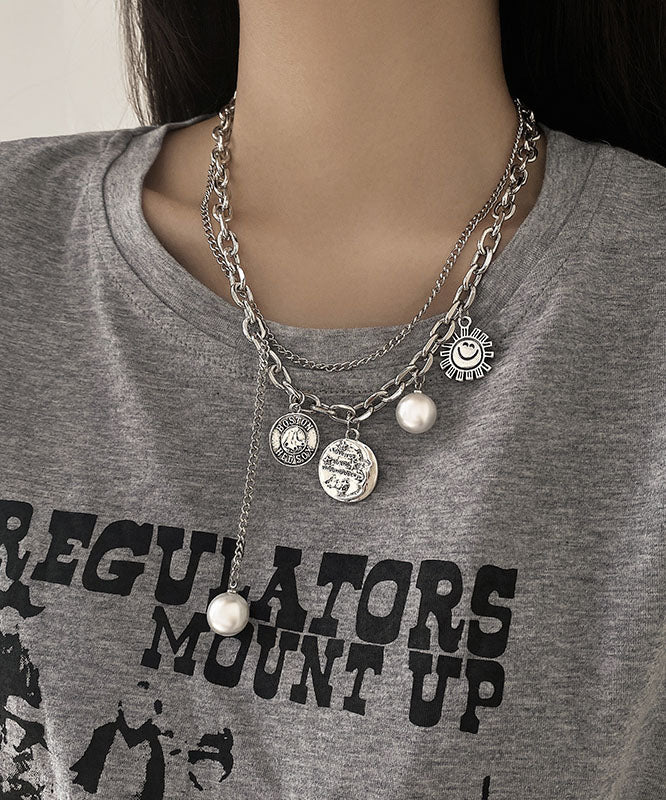 Brief Silk Alloy Pearl Smiling Face Lariat Necklace