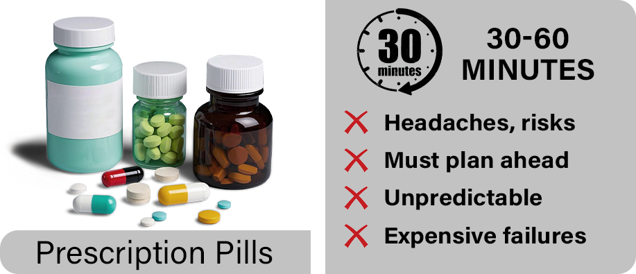 Natural nano-technology works in 3-5 minutes and lasts 2-4 hours—without the headaches, side effects, or advance planning that made prescription pills a nightmare.